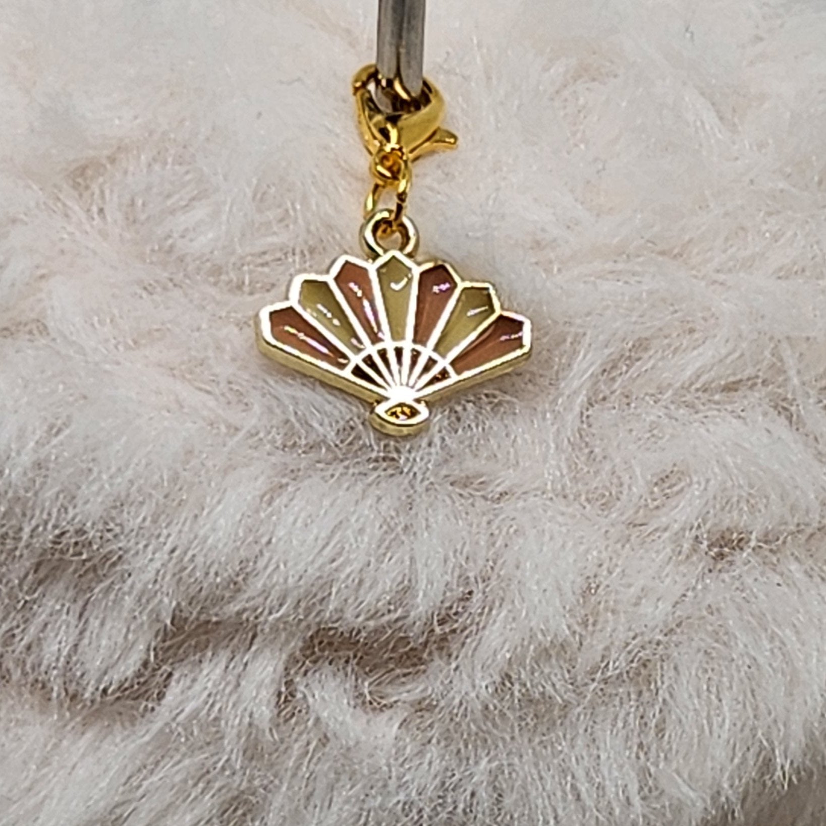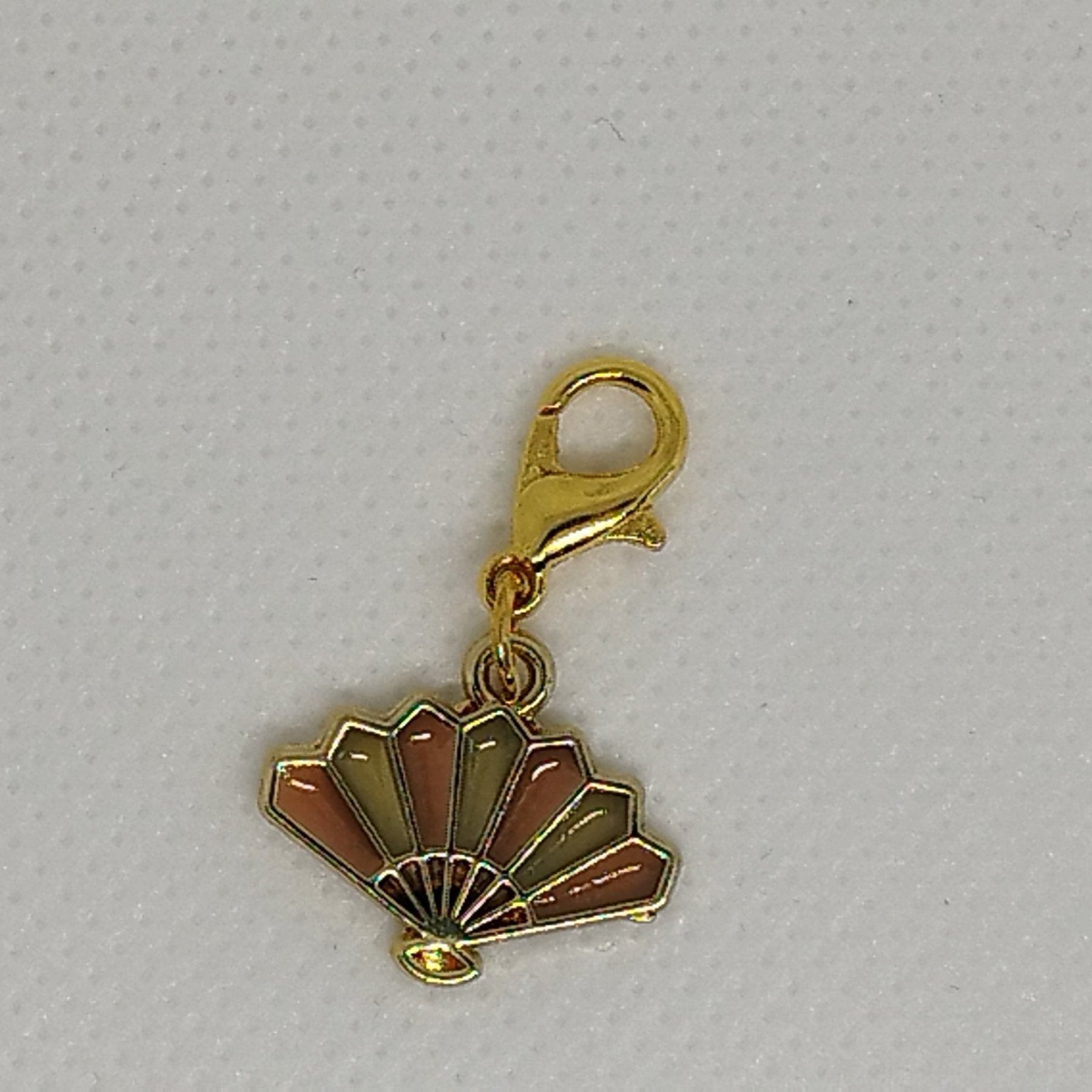 Jolie marque Maille éventail rose, vert et doré.